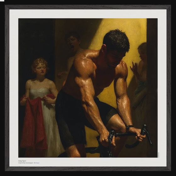 Capture the raw intensity and dramatic lighting of "Holy Spin" for your space. This striking piece, reminiscent of classical artistry with a modern edge, showcases the human form in a moment of powerful exertion, beautifully illuminated by a golden glow. It’s an ideal statement piece for those who appreciate figurative art, athletic spirit, and a touch of dramatic flair in their decor.